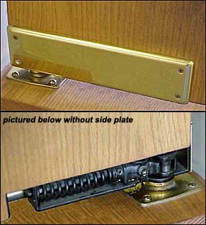 Double-acting, swings in both directions, swing hinge holds door open at 85°.