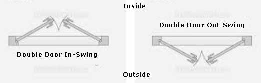 Use the diagrams below to determine the swing option. Decorative glass has a texture, v-groove, etching, wording, etc. applied to one side of the glass and the other side is smooth. If you want the texture, v-groove, wording, etc, facing you as you pull the door open then it is an out-swing door. If you want the texture, v-groove, wording, etc, facing you as you push the door open then it is an in-swing door.